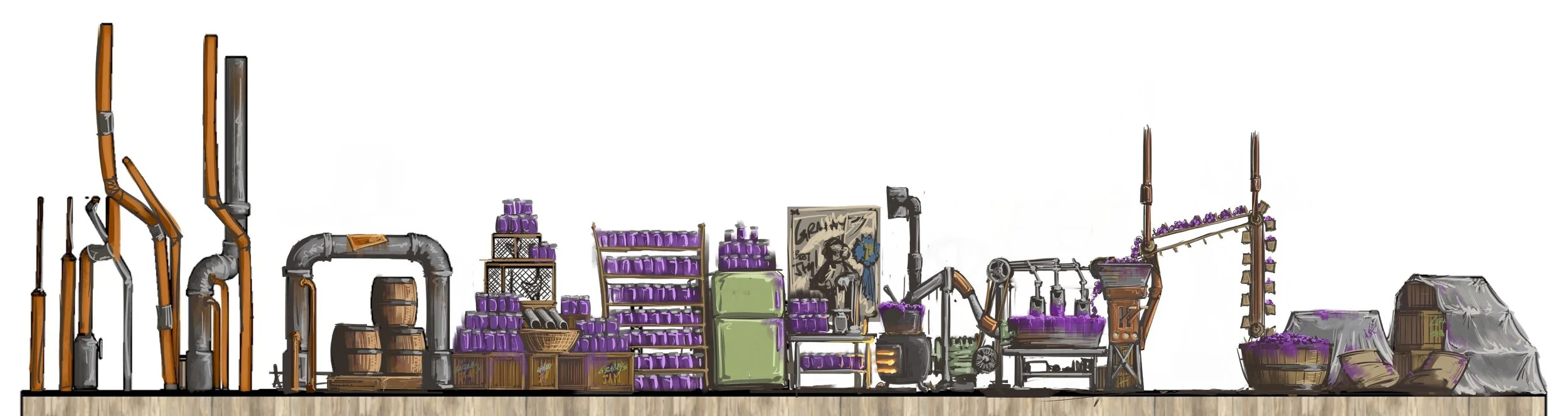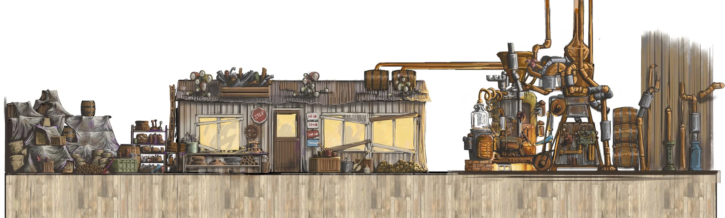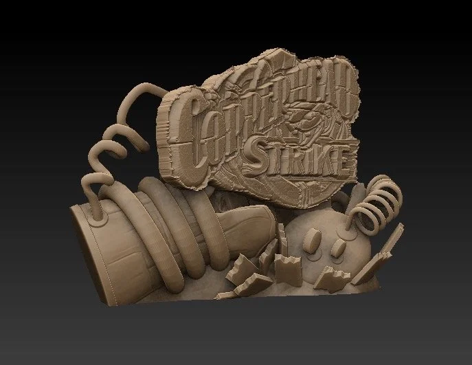 Weber was contracted for design/build services of the thematic overlay of the load station, maintenance building, launch station, and queue line of a newly constructed coaster. As Art Director, I worked with our chief creative to develop the concept based on a loose narrative from Cedar Fair. I prepared multiple sketches of scenes throughout the queue, created a digital model of the main ID sign, and provided context and a clear explanation of the narrative to our art department. Due to the nature of this project, our team of artists had a great deal of freedom in interpreting my sketches and were able to take initiative and build upon the concept art to great success. I also directed our tech team on the creation of a triggered video and practical effects in the launch building