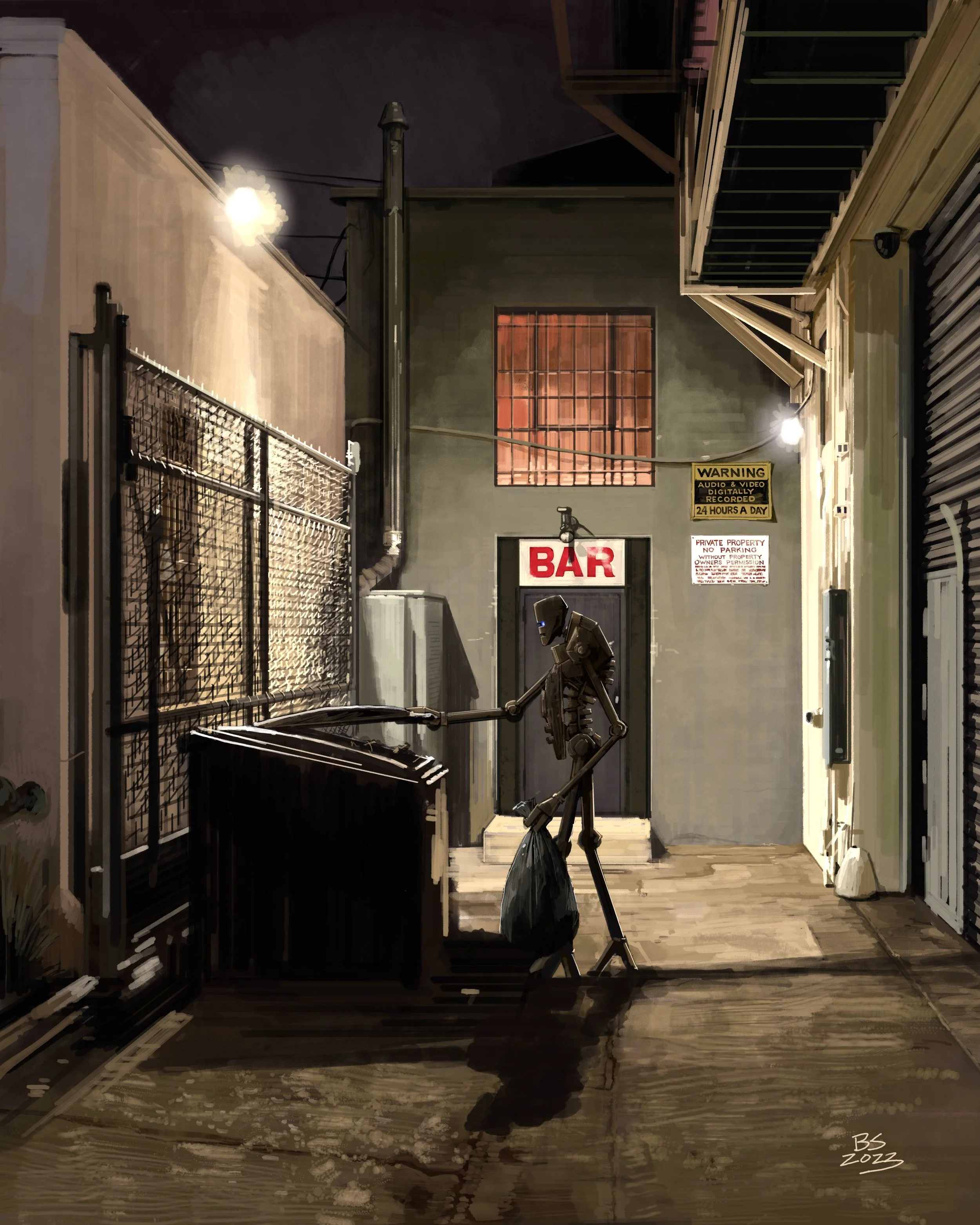 I am continually striving to improve my skills as a concept artist. I work on interiors and exteriors, from mundane to otherworldly, and focus on lighting and mood. I also drop a robot in the sketches because robots are cool.