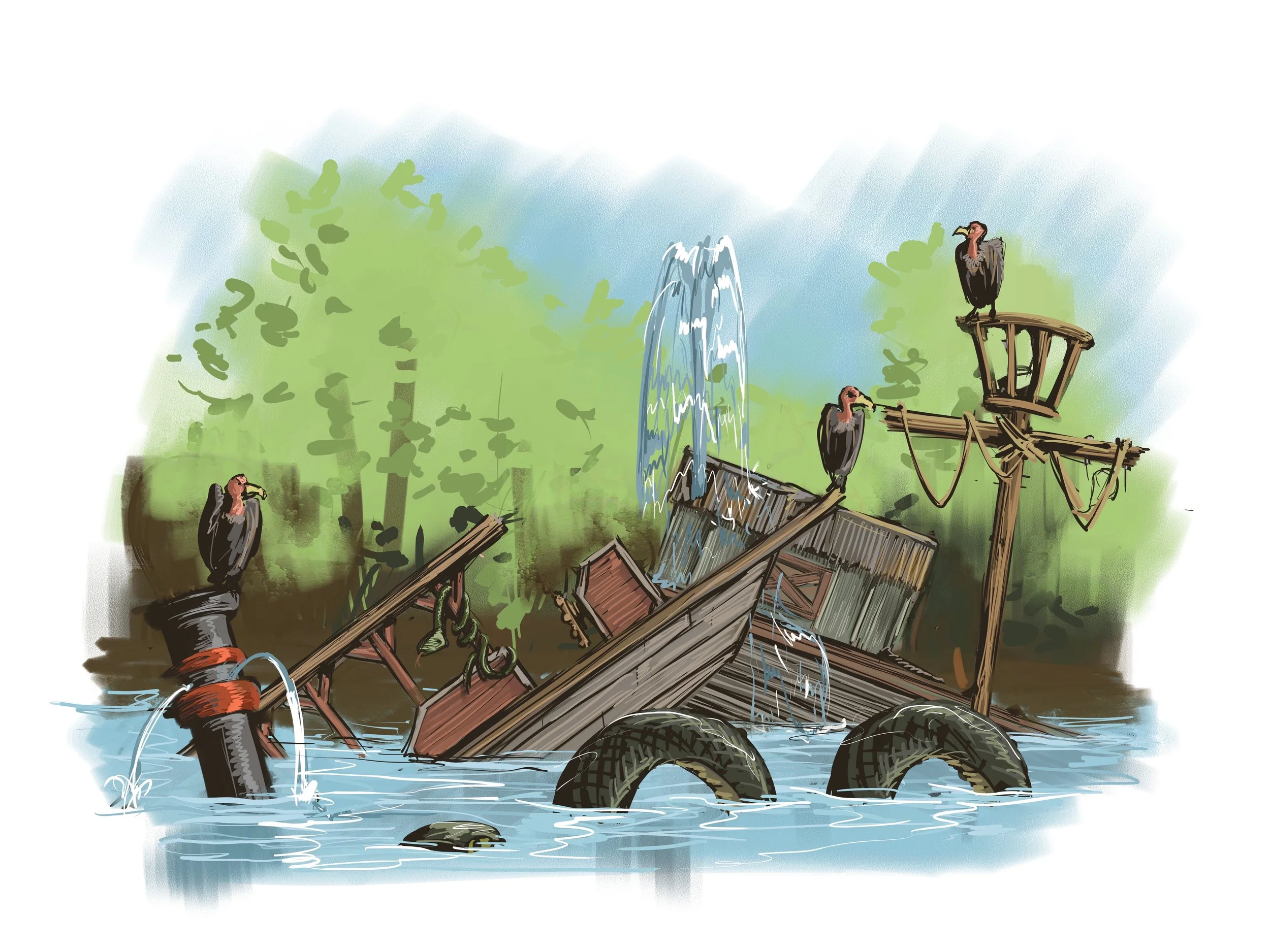 Weber Group performed design/build services for show set, show production, and thematic overlay of the exterior queue and ride vehicles for Snake River Expedition at Cedar Point. As Creative Director, I prepared concept art to visually represent the narrative created by Cedar Fair. I worked with multiple departments to translate my sketches into architectural and shop drawings. I directed our Tech Integration and Water Play divisions for show control, animated props, and water effects. I coordinated closely with Cedar Fair to ensure our designs and builds were consistent with a changing narrative and live entertainment component.